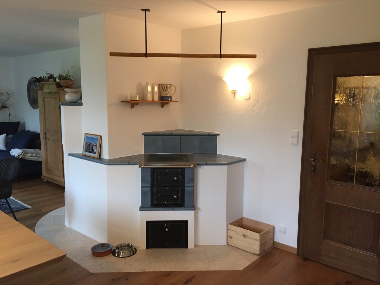Den Herd zu beheizen ist des Hausherrn liebste Beschäftigung. Über 20 m3 Brennholz warten darauf, dass er es Morgen für Morgen sorgfältig in den Pertinger T52 schichtet, so wie es ihm der Philipp Kogler gezeigt hat. Geplant hat das schöne Ding auch der Philipp Kogler, mit viel Einfühlungsvermögen und fachlicher Kompetenz. Gesetzt hat ihn der Christian mit wahrlich meisterlichem Geschick. Er erfreut uns Tag für Tag und erwärmt den Raum, die Speisen und unser Herz. Die Hörmann´s aus Oberalm.